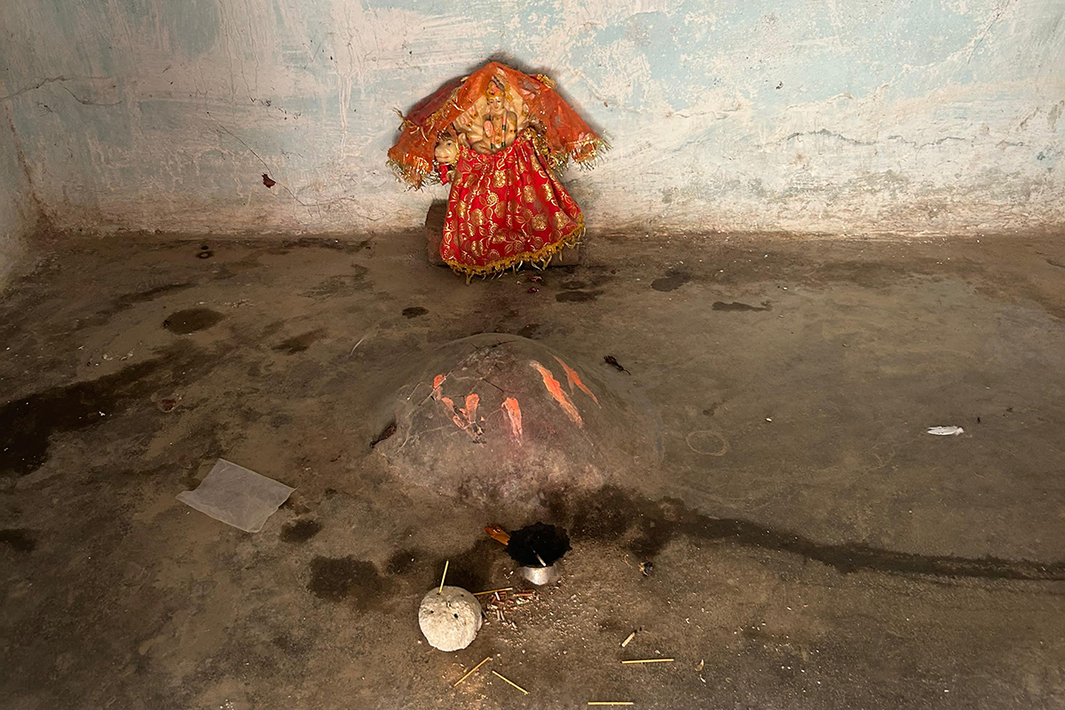 कुलदेवी का नाम अब विस्मृत हो गया है। पूजा की विधियाँ देवी दुर्गा की पूजा संस्कारों से मेल खाती हैं इससे यह आभास होता है कि नरौनी राजपूतों की कुल देवी संभवतः देवी सती थीं। कुछ लोग इन्हें कुमारी देवी या झरनी देवी भी कहते हैं। पहले कच्ची मिट्टी से बना मंदिर समय के साथ साथ अब सीमेंट और कान्क्रीट का बन गया है।